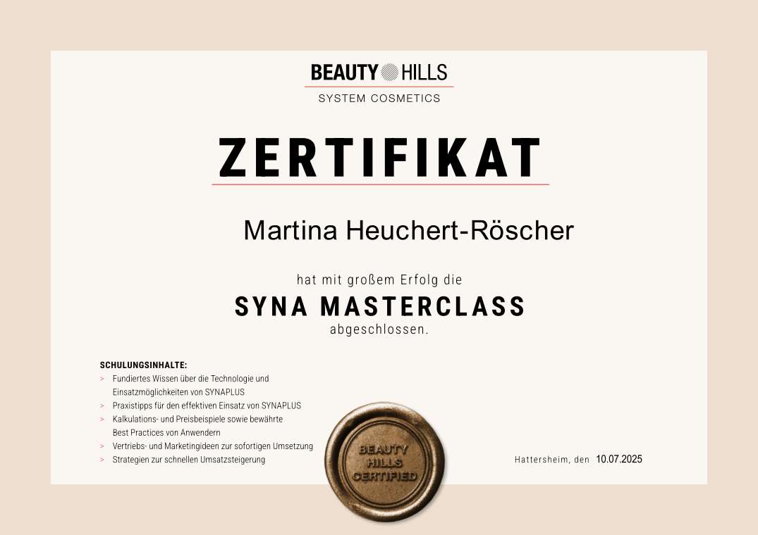 Als zertifiziertes Partnerstudio von Beauty Hills liegt mein Fokus auf der nachhaltigen Gesundheit Ihrer Haut – individuell, ganzheitlich und wirkungsvoll.